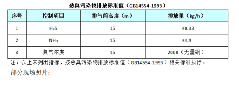 處理后的廢氣達到《惡臭污染物排放標準》(GB14554-93)中的相關限值標準。