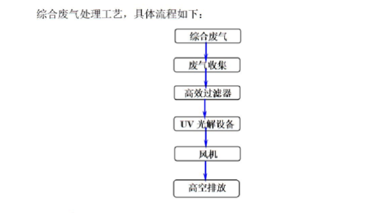 采用工藝:廢氣收集+高效過濾器+UV光解設備+風機+高空排放